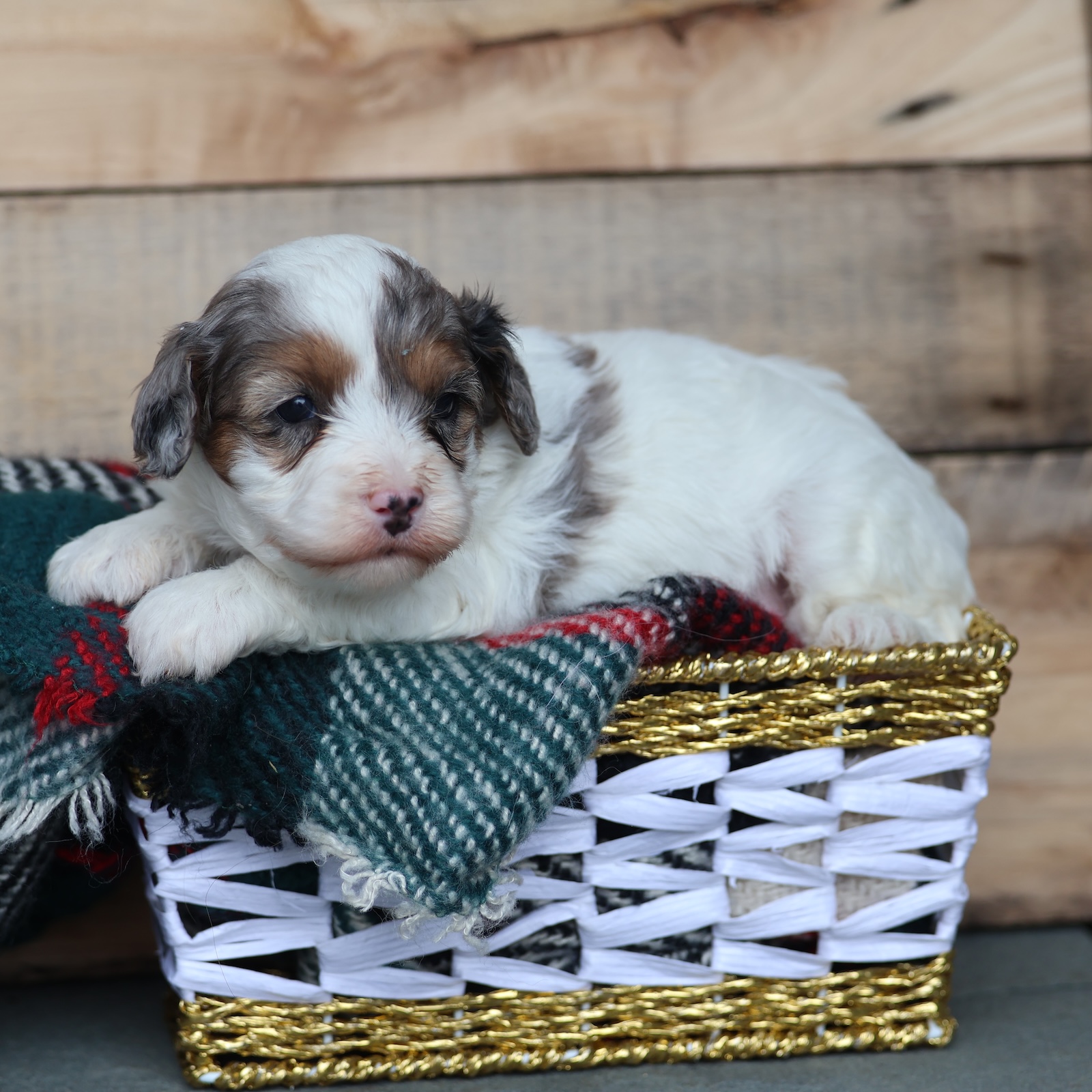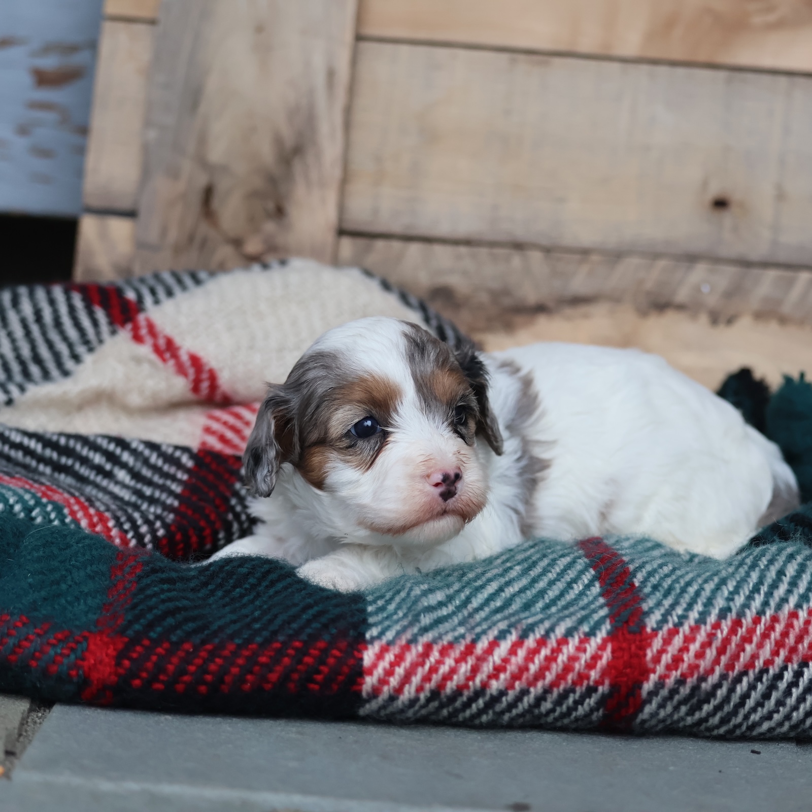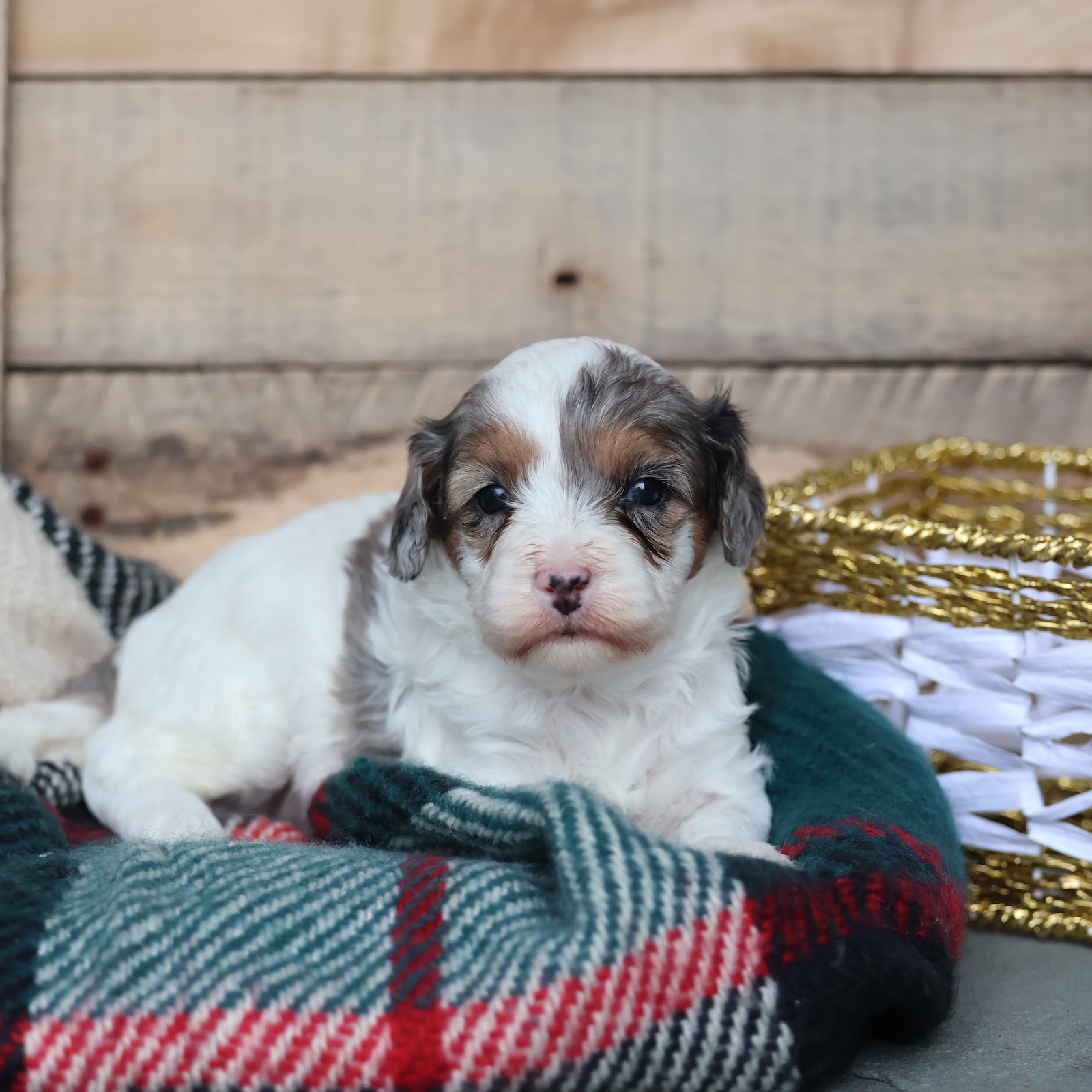 Meet Frosty—your tiny snowday best friend. This handsome little Cavapoo has a bright, happy sparkle that lights up a room faster than a tree topped with twinkle lights. Frosty is curious, fun, and full of sweet puppy wonder, like he’s discovering the world one jingle at a time. He’s the type to prance right into your heart, then stay there, warming your winter with snuggles and silliness. Whether he’s romping around like a little holiday elf or napping peacefully in your lap, Frosty turns ordinary moments into something merry.